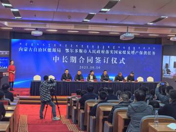 10月10日下午,在鄂爾多斯市舉行的落實國家煤炭增產保供任務中長期合同簽訂儀式上,匯能集團根據自治區分配的煤炭增產保供任務指標,由喬俊峰副總經理代表公司分別與江蘇、吉林、上海、黑龍江四省市簽訂了170、50、30、30共280萬噸的煤炭增產保供任務中長期合同,將為緩解四省市用煤緊張、保障居民溫暖過冬發揮重要作用。