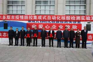 捐贈儀式上,匯能集團喬俊峰副總經(jīng)理代表集團公司向鄂爾多斯市紅十字會捐款1200萬元,與其他愛心企業(yè)共同完成了自動化核酸檢測實驗室及耗材的捐助工作。本次愛心企業(yè)捐贈的檢測實驗室投入使用后,能使全市衛(wèi)健系統(tǒng)及時根據(jù)疫情防控需要,在第一時間迅速展開大規(guī)模核酸檢測,為大幅度提高全市核酸檢測效率,助力全市堅決打贏疫情防控阻擊戰(zhàn)提供強有力的設(shè)備保障。